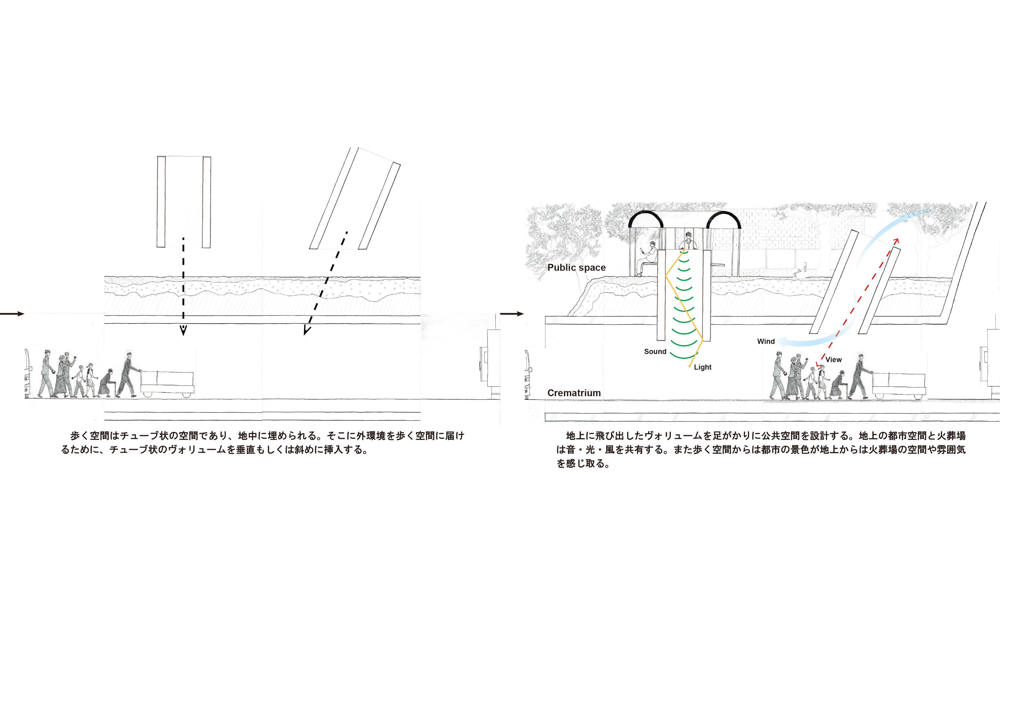 この制作では、港区虎ノ門に公共空間と火葬場を同居させたランドスケープによって、